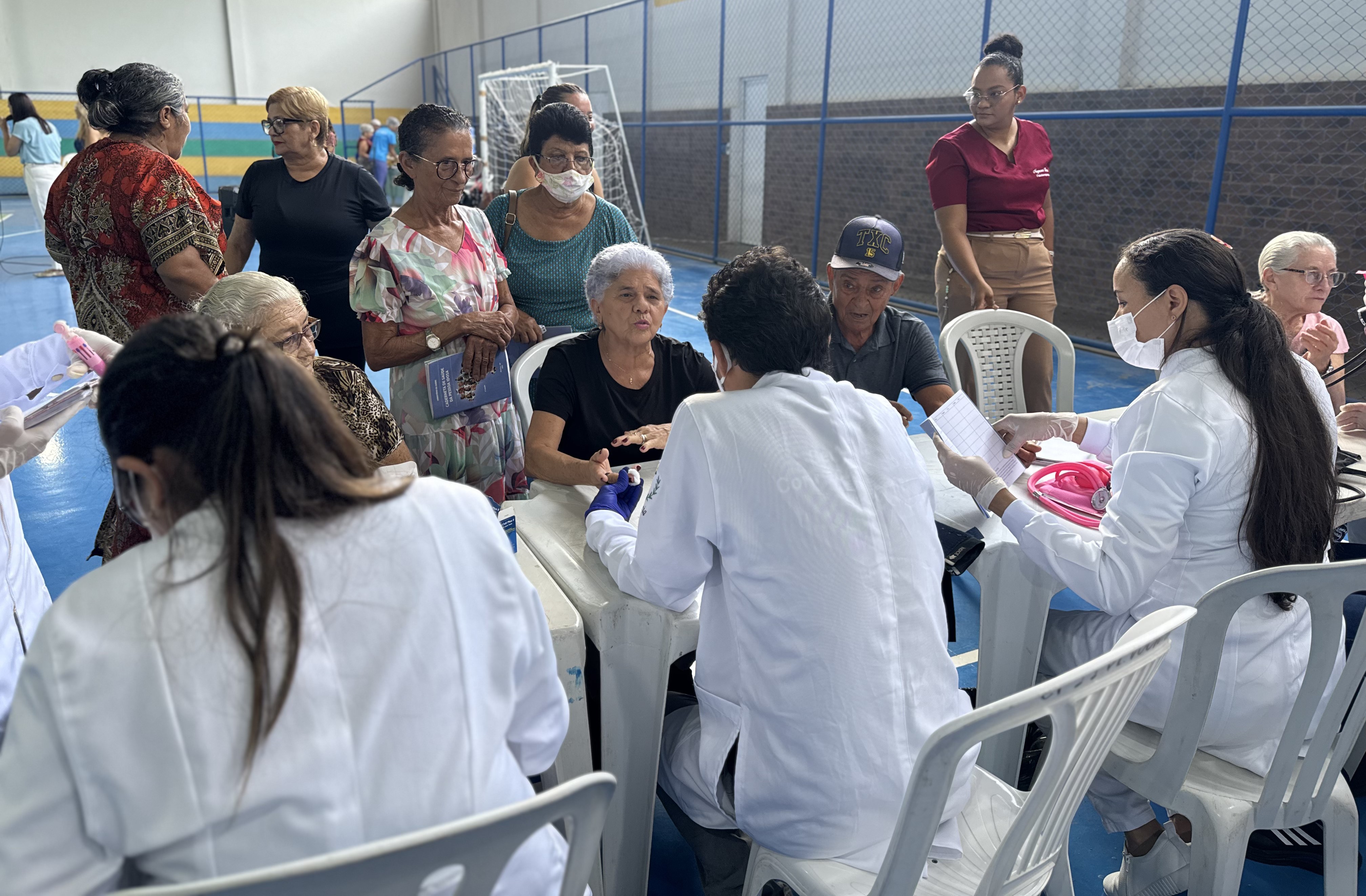 Cerca de 120 idosos participaram da programação durante a manhã, e em parceria com instituições de ensino superior, foram ofertados serviços como aferição de pressão arterial, teste de glicemia, atualização da caderneta de saúde da pessoa idosa e palestras educativas com foco em hábitos saudáveis e prevenção de doenças.